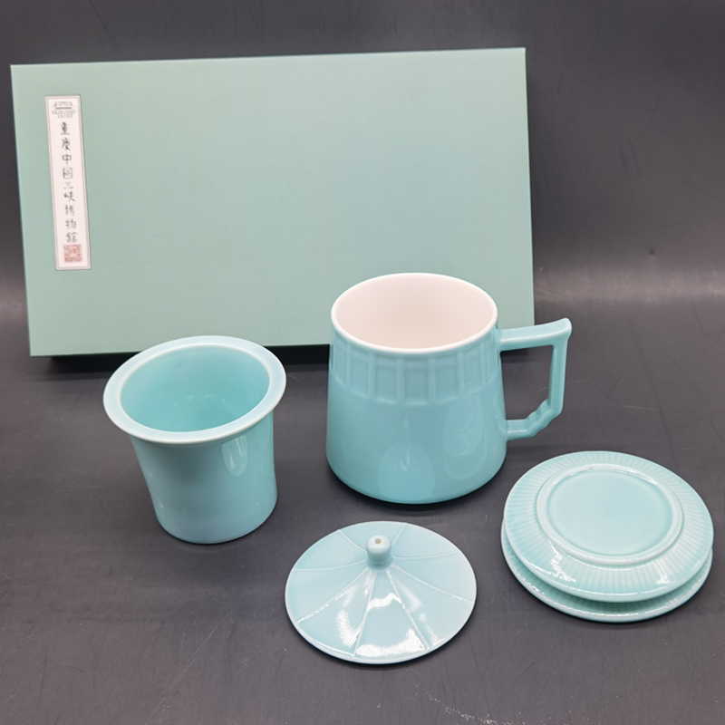 三博影青釉大礼堂茶杯不带金边款01