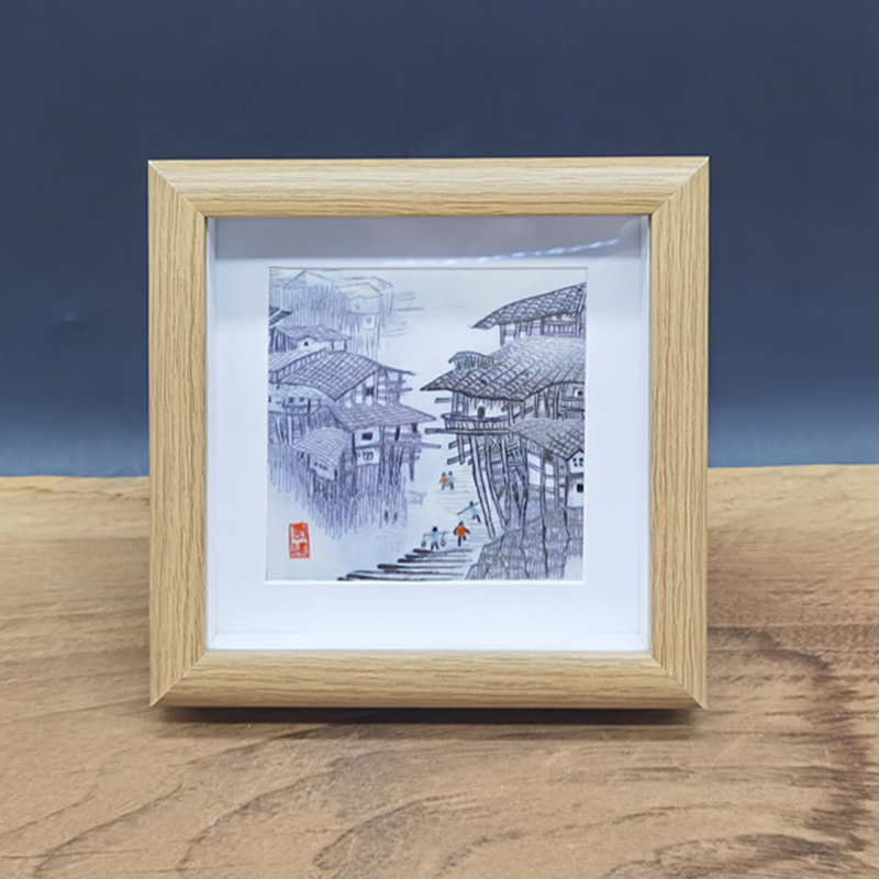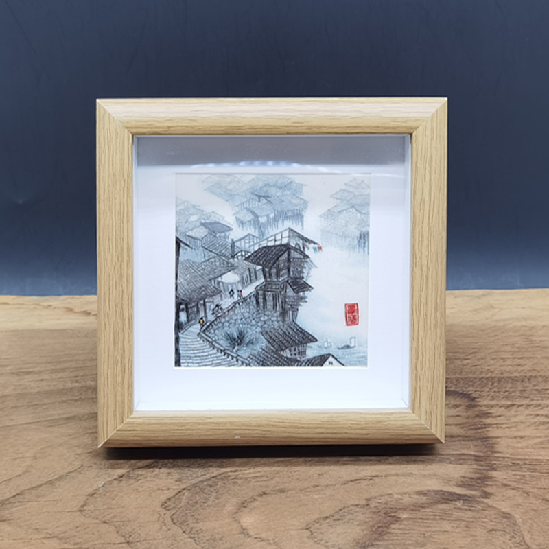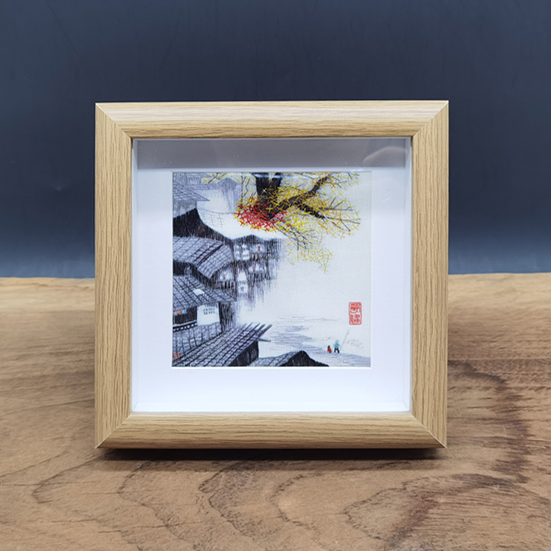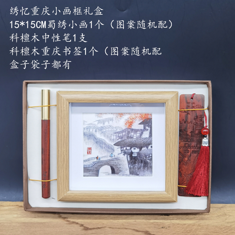 绣忆重庆蜀绣15X15CM小画框组合+科檀木笔和书签